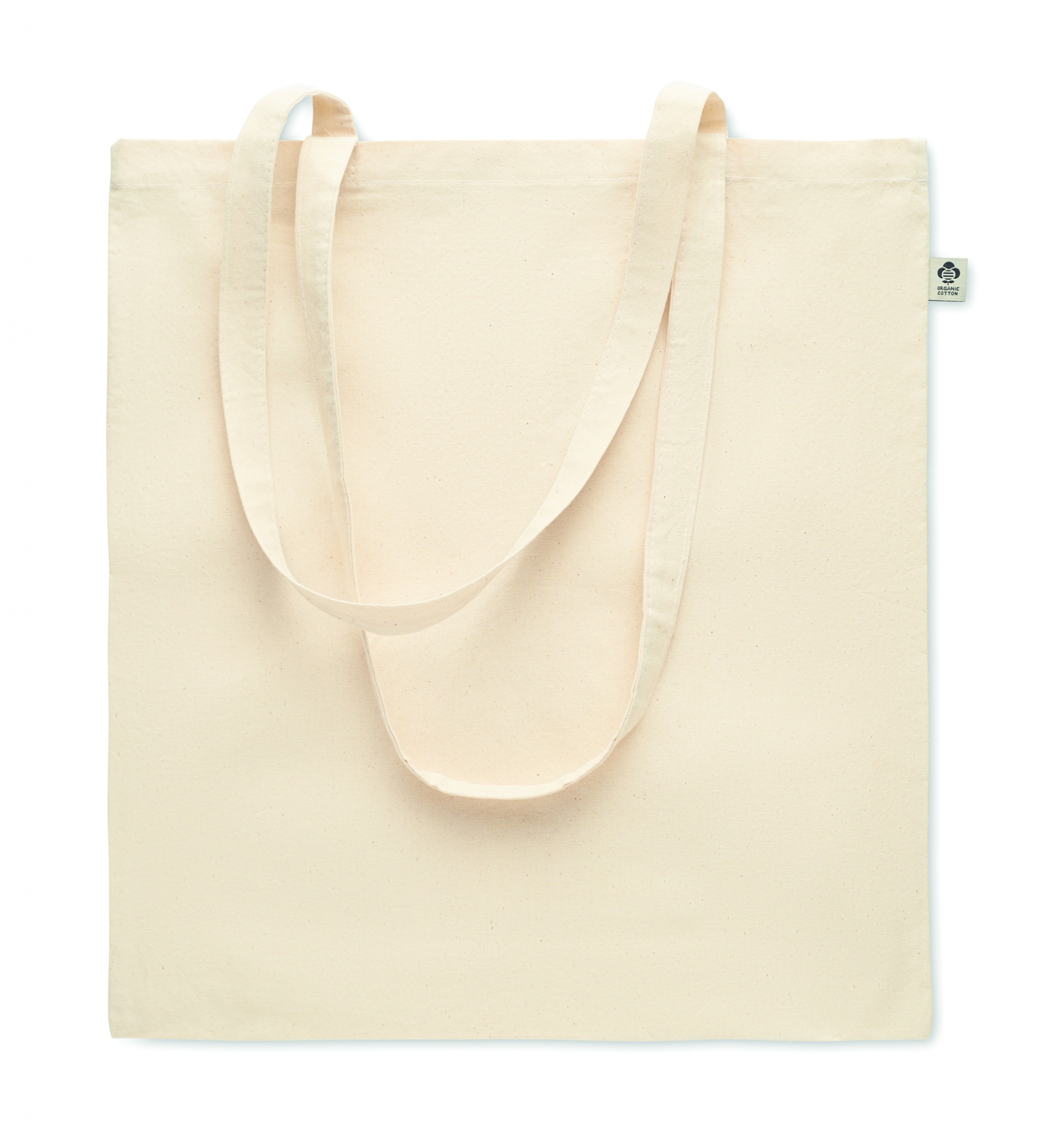 Orgaanilisest puuvillast pikkade sangadega ostukott. 180 gr/m².