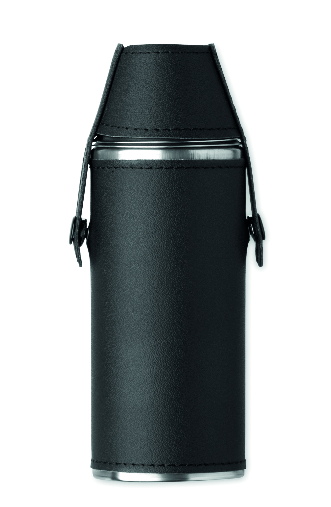 Roostevabast terasest plasku PU-nahast pinnaga ja kahe roostevabast terasest 20 ml topsiga. Mahutavus: 230 ml.