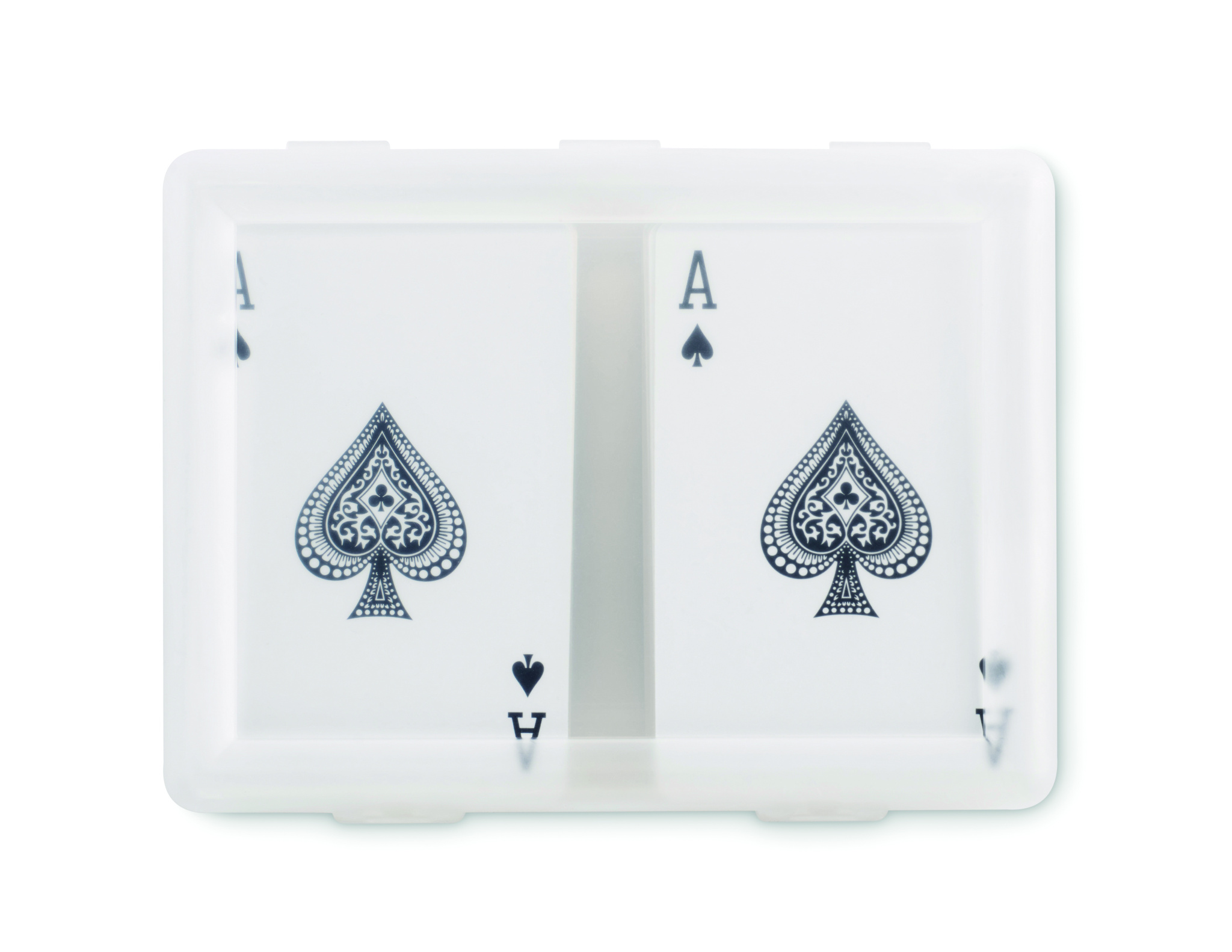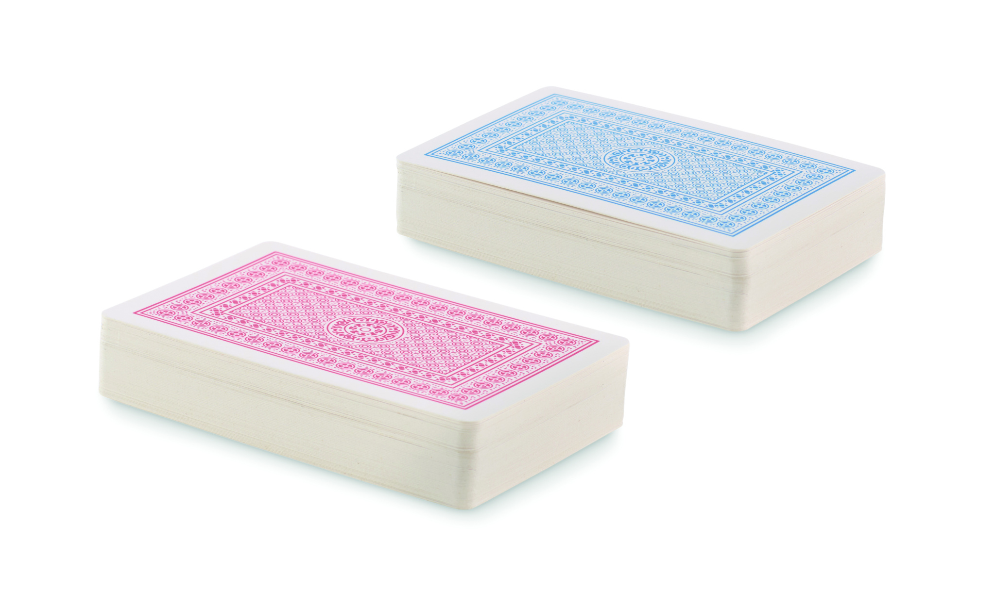 2 komplekti klassikalisi mängukaarte taaskasutatud PP ümbrises. 2x54 kaarti (punane ja sinine).
