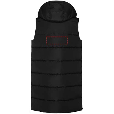 Polsterdatud kehasoojendaja eemaldatava kapuutsiga. Kõrge krae. Ees tõmblukk, mida varjab klapp. Kaks nööbiga suletavat taskut. Tõmblukuga küljeavad. Juurdepääs rinnakorvi sisemusse. Vett hülgav.