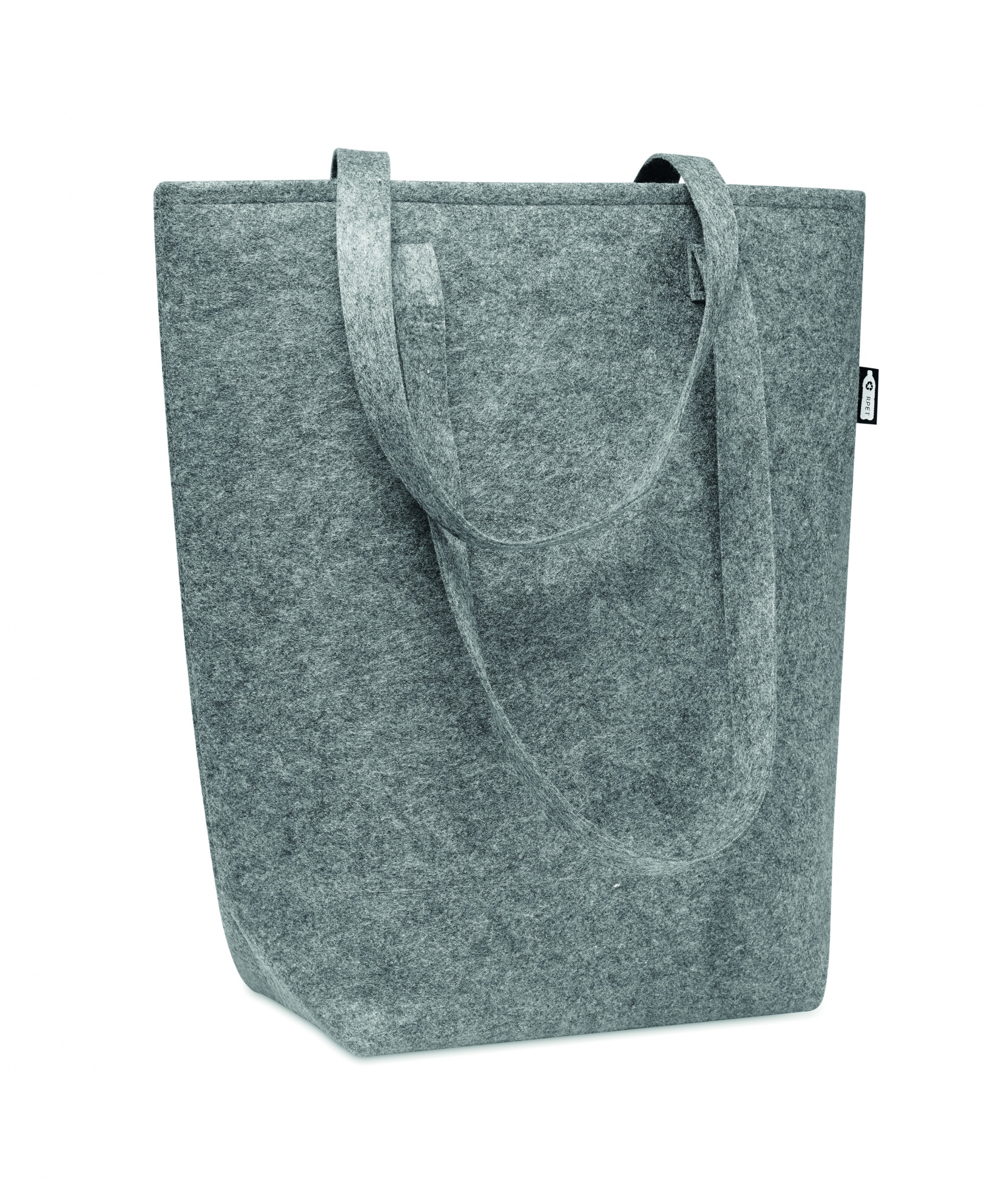 RPET vildist ostukott, pikkade sangade ja põhjasõlmidega. Vildi paksus: 2 mm.