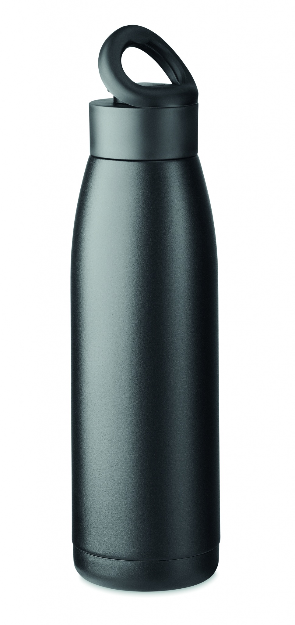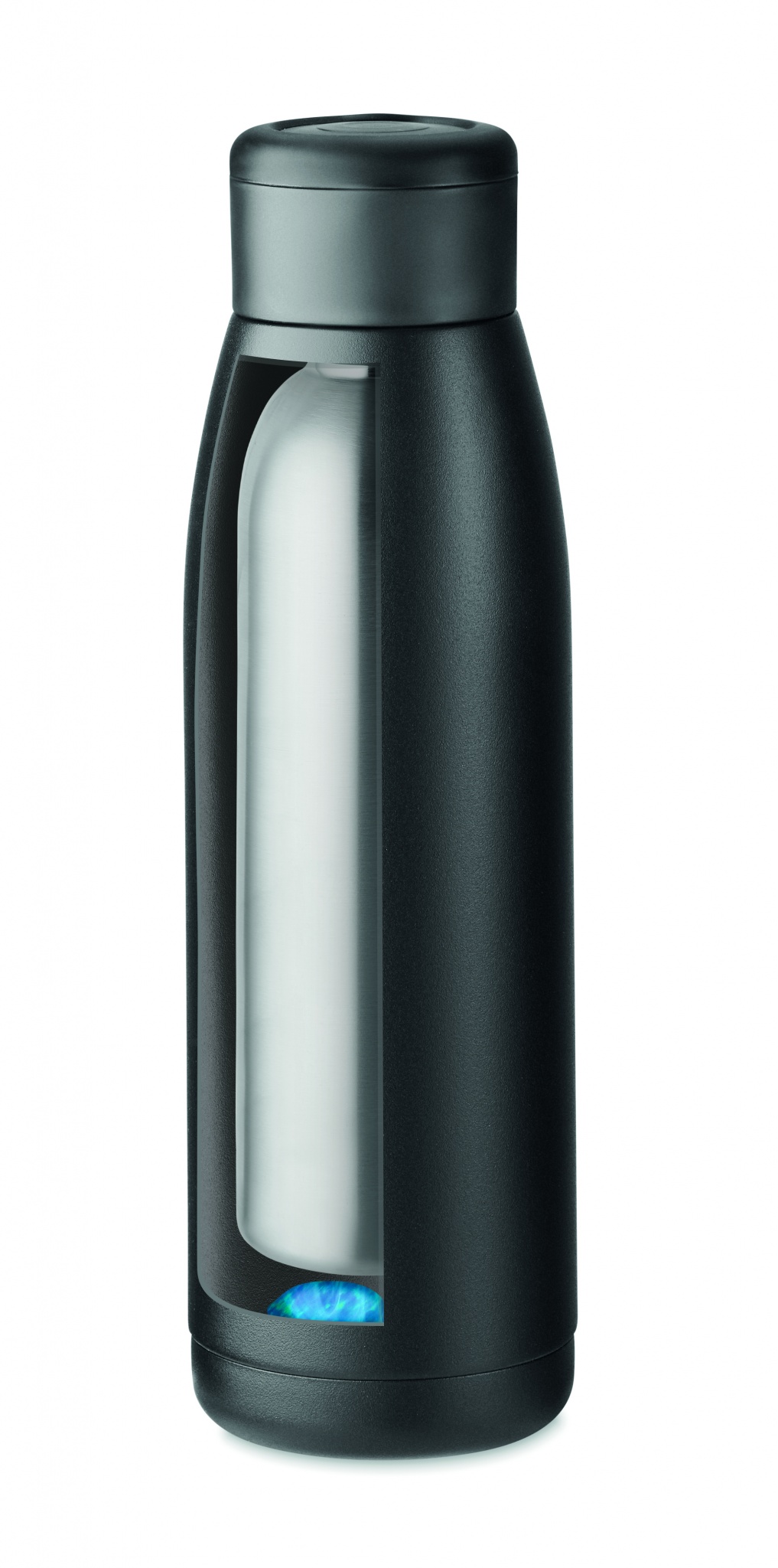 Kahekordse seinaga taaskasutatud roostevabast terasest (90% taaskasutatud roostevabast terasest ja 10% roostevabast terasest) pudel pehme silikoonist kanderõnga kaanega. Pudeli lihtsalt loksutades muutub temperatuur soojenduseks või jahutamiseks, oleneb sees olevast vedelikust. Lekkevaba. Mahutavus: 400 ml.