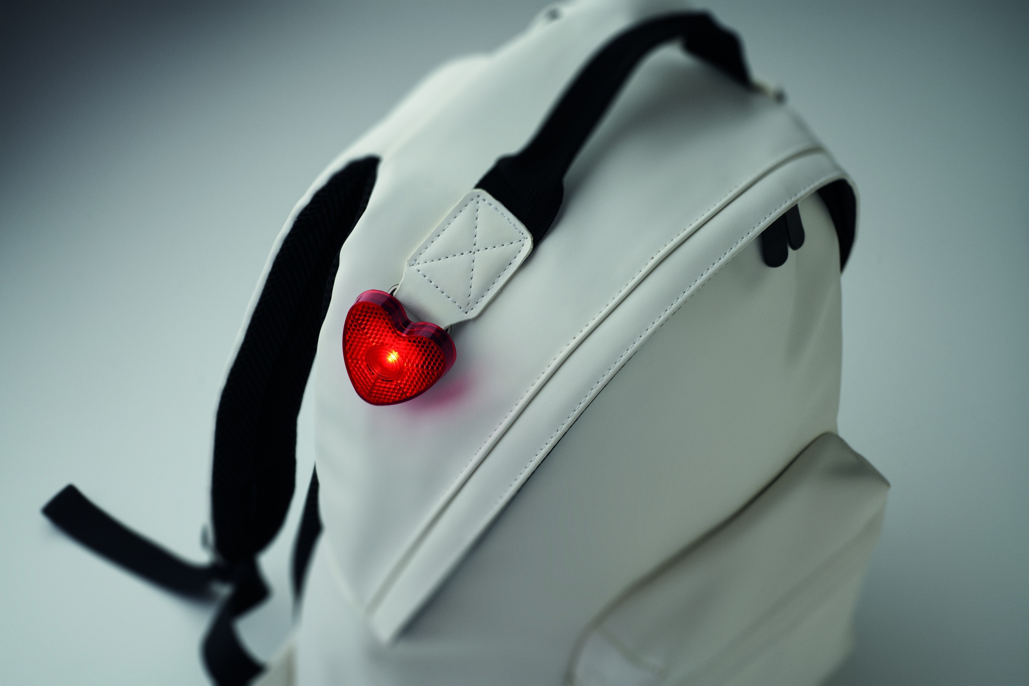 Südamekujuline helkur punane tuli ABS-ist koos tagaklambriga. Kaks valgusrežiimi: ere valgus / vilkuv valgus. Kaasas 2 LR44 vahetatavat patareid.