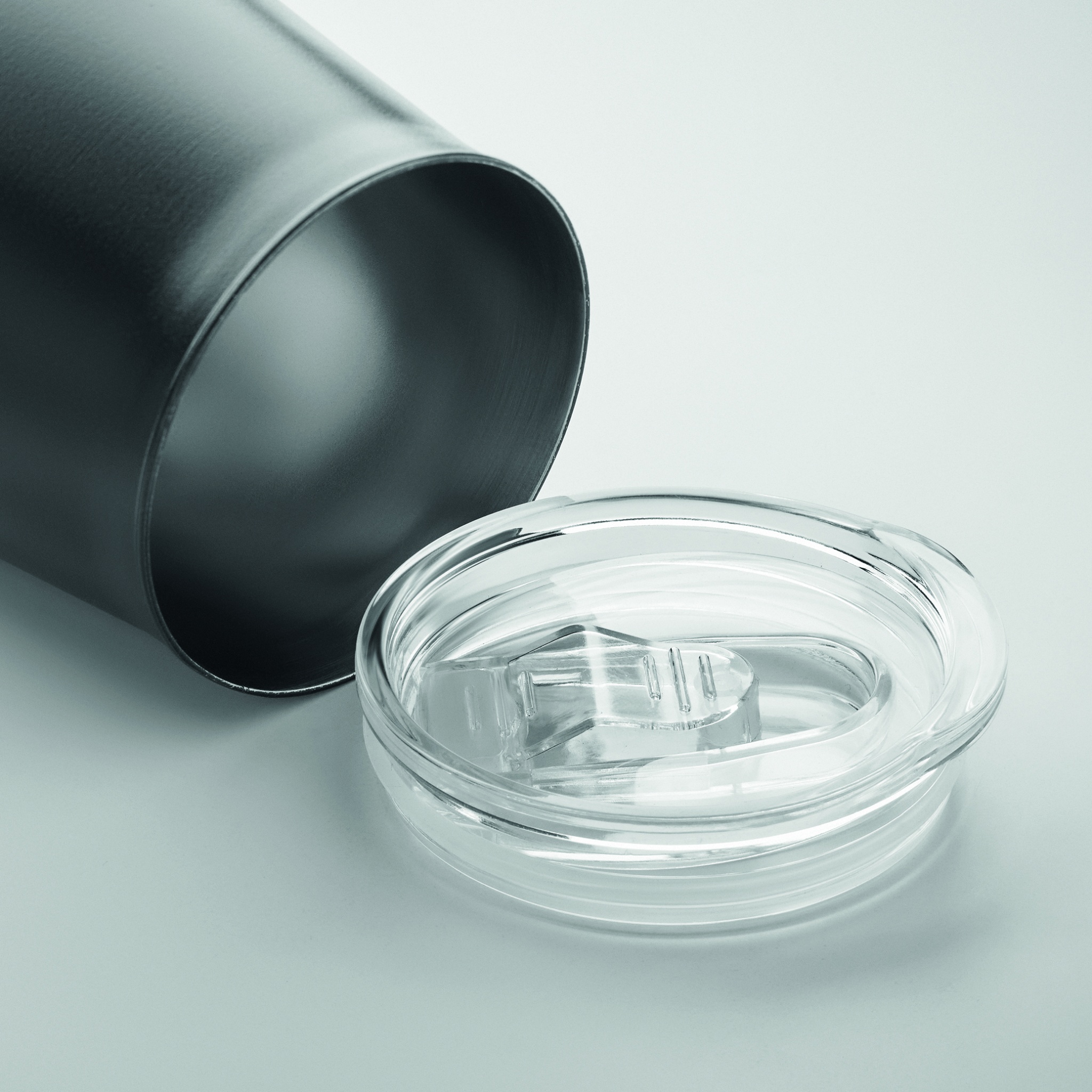 Taaskasutatud roostevabast terasest (90% taaskasutatud roostevabast terasest ja 10% roostevabast terasest) pulbervärvitud kruus kaanega, millel on libiseva sõõmuava kate. Mahutavus: 500 ml. Kuna see on ühe seinaga kruus, võib soojusülekanne siiski toimuda.