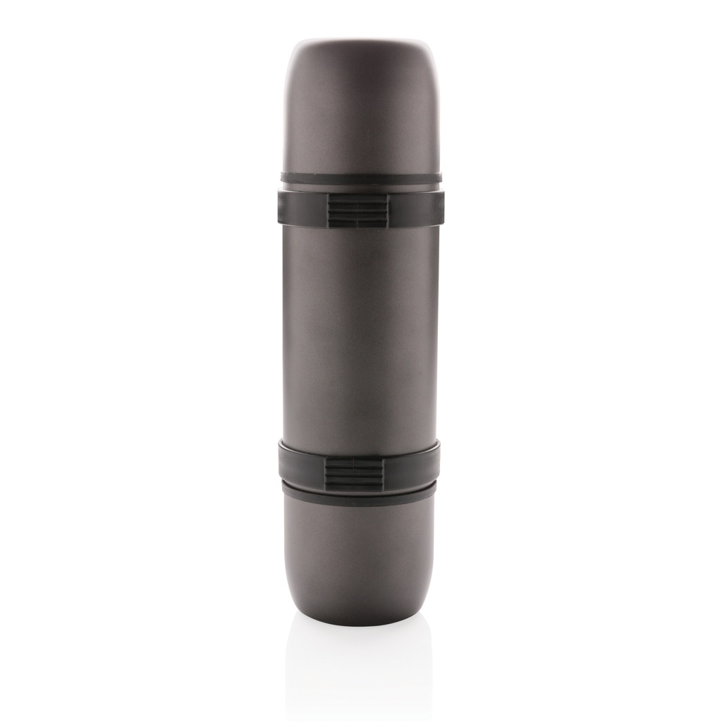 Elegantse disainiga roostevabast terasest kaheseinaline vaakumkolb käepideme ja õlarihmaga ning sisaldab kahte sobivat tassi optimaalse joogikogemuse tagamiseks. Lekkekindel ja ainult käsipesu. Sisu 700ml.