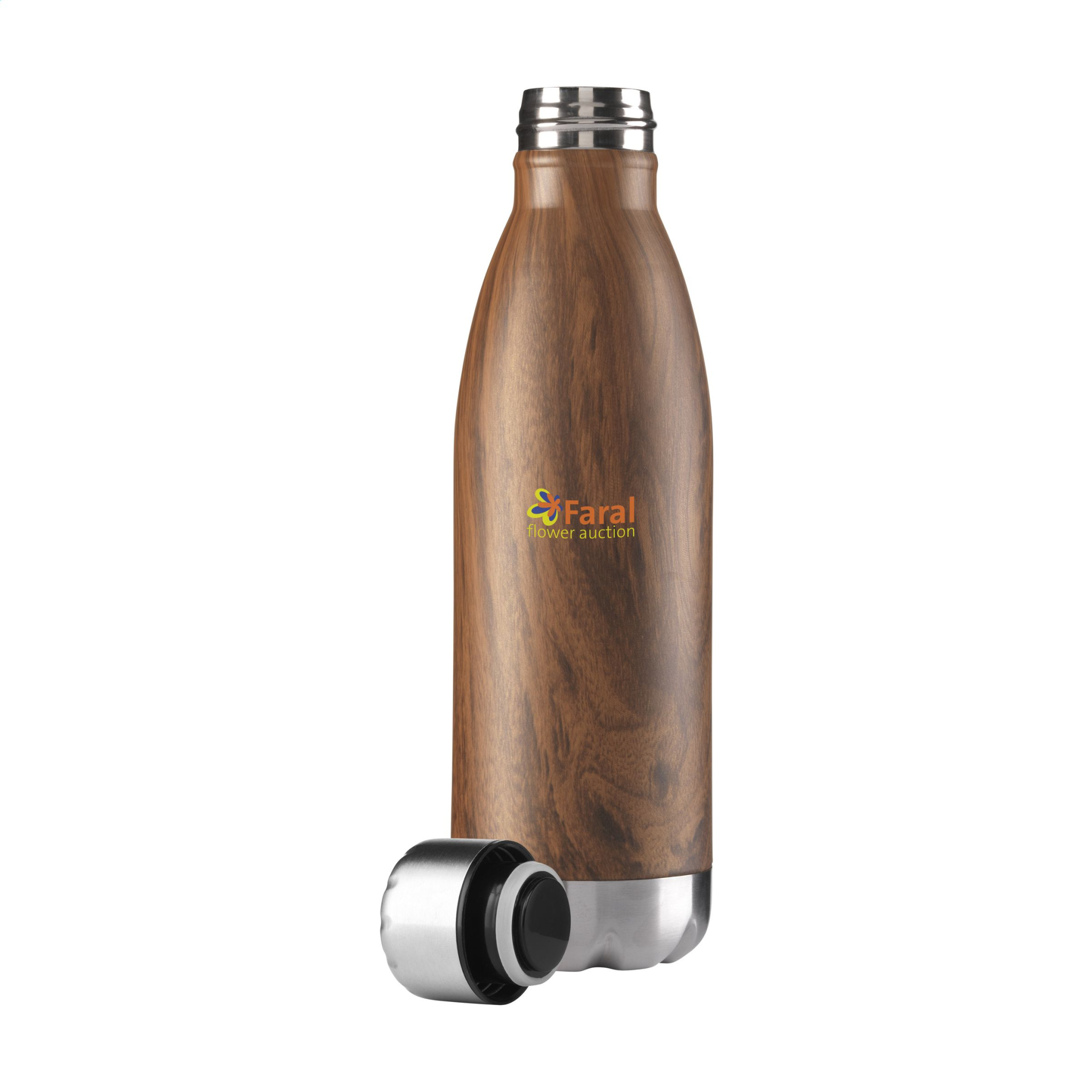 Kahekordse seinaga vaakumisolatsiooniga roostevabast terasest veepudel. Lekkekindla keeratava kaanega. Sellel elegantsel mudelil on silmatorkav, atraktiivne puidusüümustriga pealiskiht. Sobib külma või kuuma vee temperatuuri hoidmiseks. Mahutavus 500 ml. Iga ese on eraldi karbis.