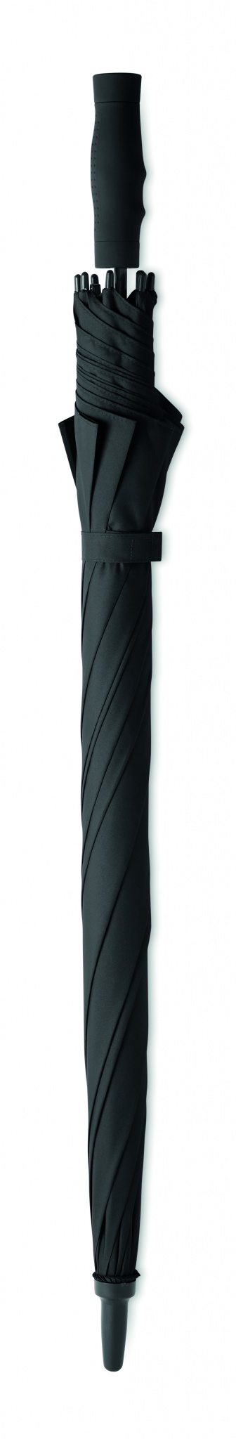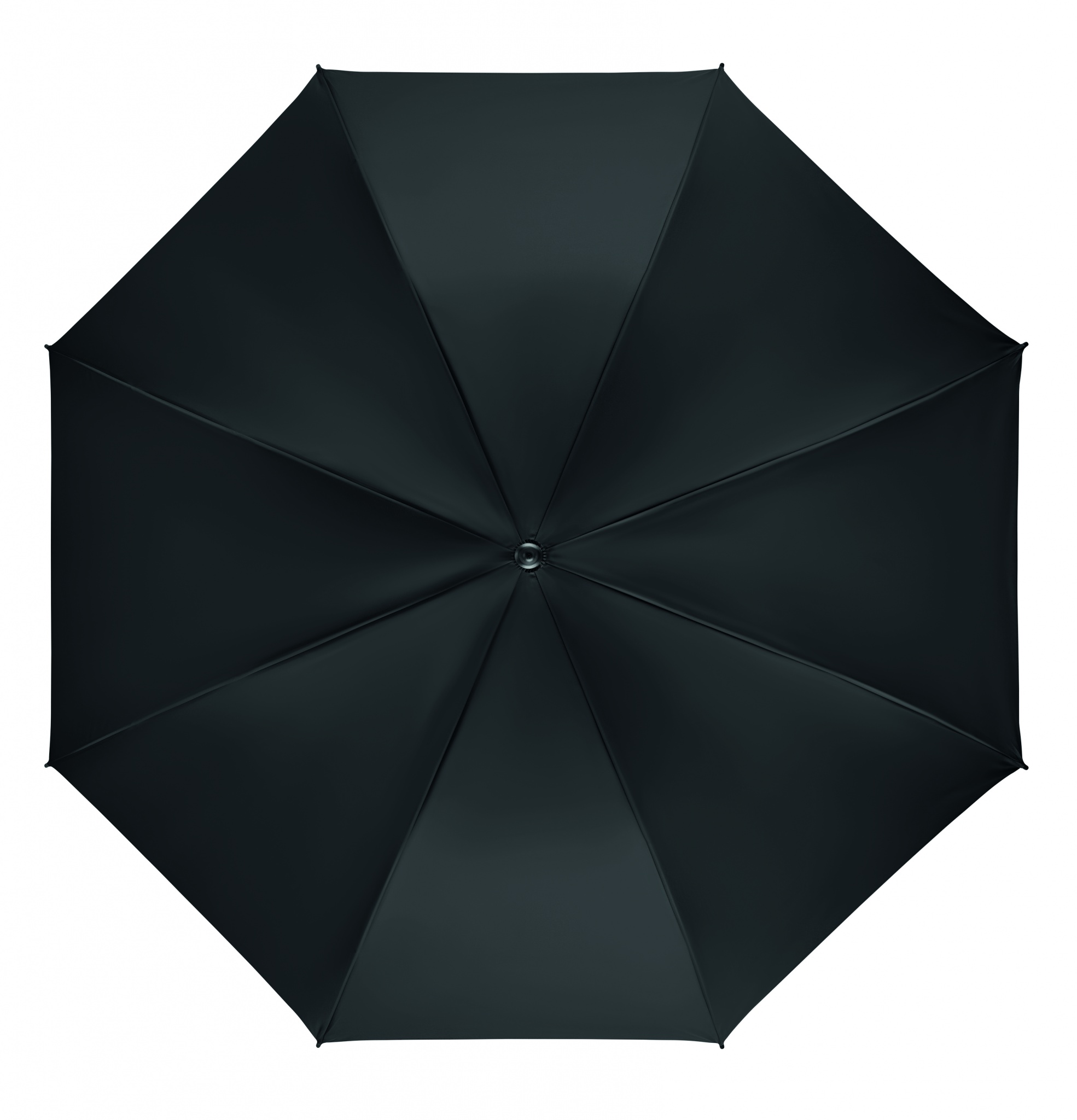 27-tolline automaatselt avatav tuulekindel vihmavari 190T pongee klaaskiust varre ja ribidega. Mustast plastikust otsad ja top. Sirge must ABS-käepide kummikattega. Käsitsi sulgemine.