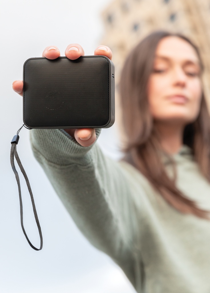 Tasku suurus ja võimas 3 W juhtmevaba kõlar, mis on valmistatud RCS-i (Recycled Claim Standard) sertifitseeritud ringlussevõetud ABS-ist Kogu taaskasutatud sisaldus: 49% eseme kogukaalust. RCS-sertifikaat tagab taaskasutatud materjalide täielikult sertifitseeritud tarneahela. Sellel suurepärasel kõlaril on IPX 7, nii et see talub vett ja sobib ideaalselt randa või basseini kandmiseks. Kõlar kasutab BT5.1, mis võimaldab kuni 6 tundi esitusaega. Urban Vitamin tooted on valmistatud ilma PVC-ta ja pakendatud vähendatud plastikpakendisse. Kaasa arvatud C-tüüpi laadimiskaabel, mis on valmistatud RCS-sertifikaadiga taaskasutatud TPE-st.
