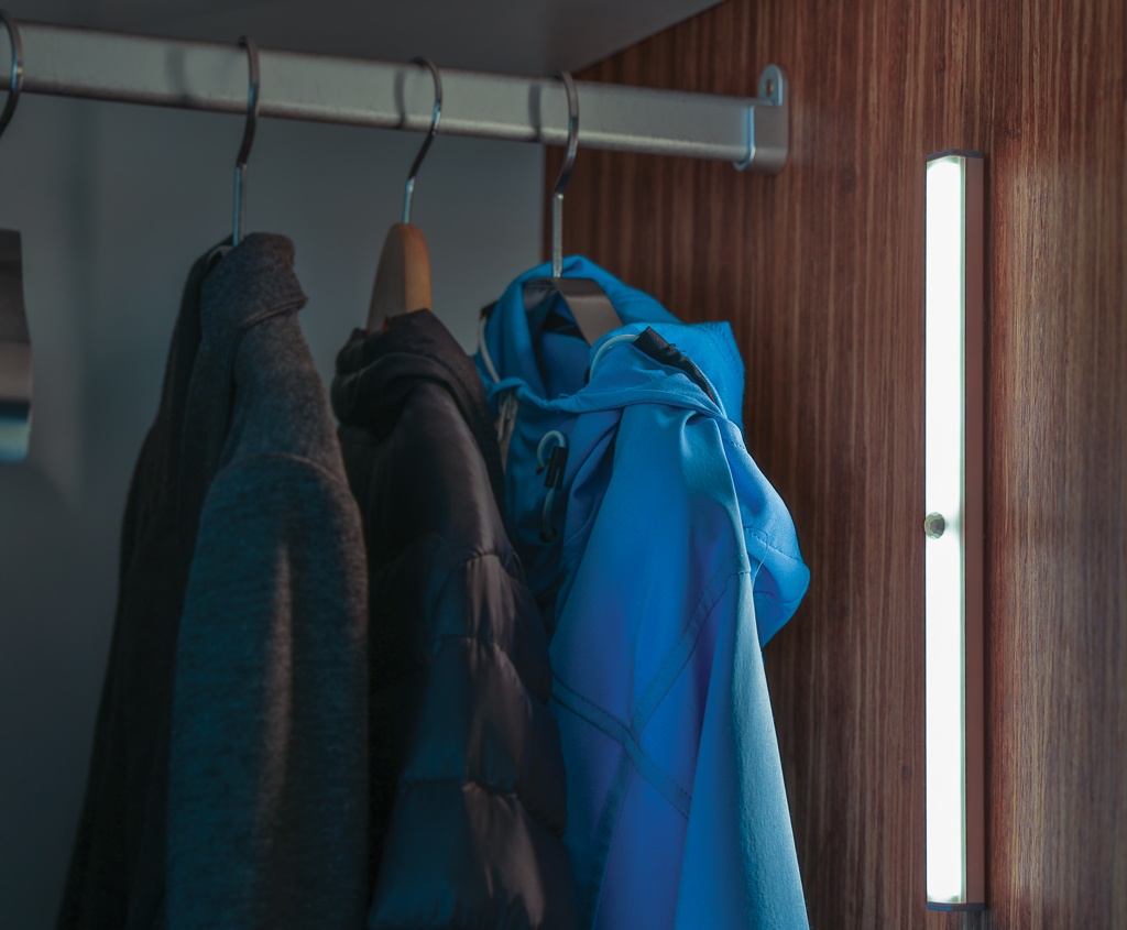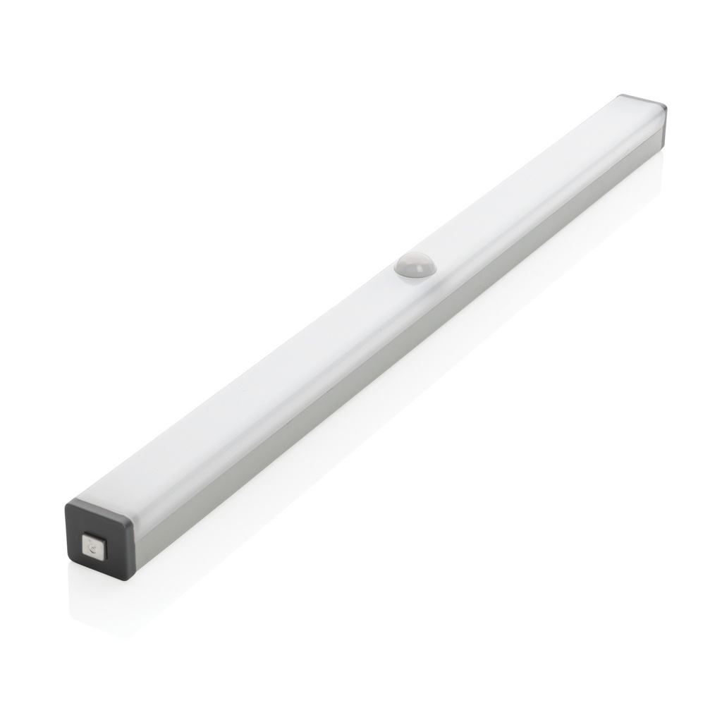 Alumiiniumist LED riba liikumisandur 20 LED-iga. Magnetilise tagapaneeliga metallpindadele kinnitamiseks. Kaasas 2 magnetit kleebistega mittemagnetilistele pindadele kinnitamiseks. Ideaalne kasutada garaažis, töölaua kohal, koridoris või kapis. Kaks režiimi: pidev või automaatne andurituvastus. LED-tuli lülitub sisse, kui see tuvastab liikumise, ja lülitub välja 35 sekundi pärast, kui edasist liikumist ei tuvastata. 500 mah liitiumakuga, mis võimaldab pidevat kasutamist kuni 3,5 tundi ja anduri kaugust kuni 3 meetrit. 30 luumenit. USB-taaslaetav kaasasoleva PVC-vaba mikro-USB-kaabliga.