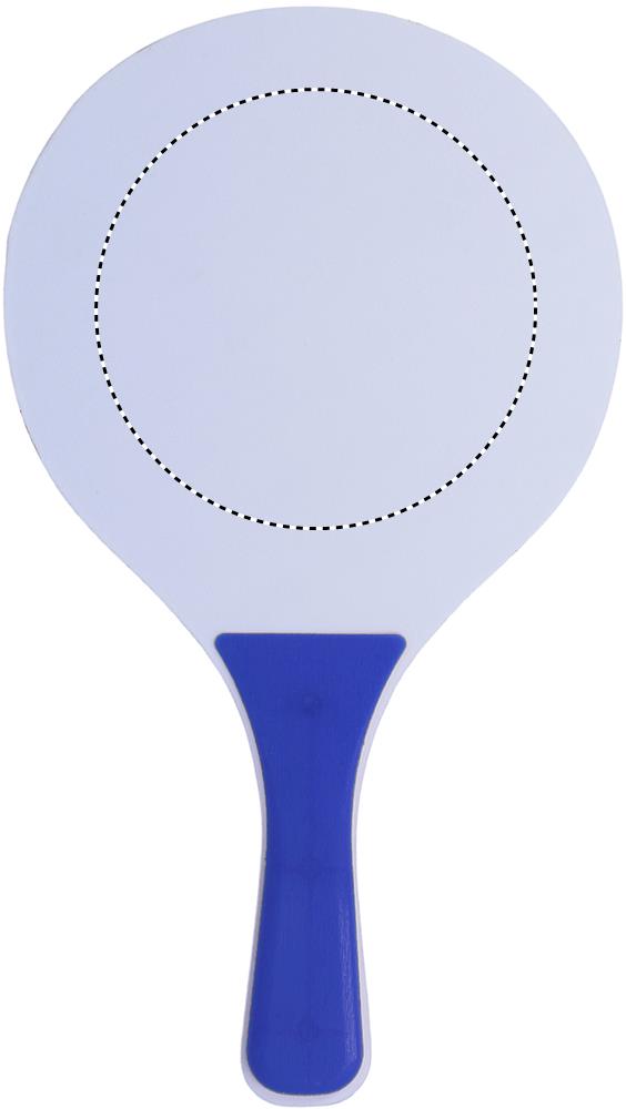 Väike rannatennise komplekt, mis koosneb 2 MDF reketist ja 1 pehmest pallist.