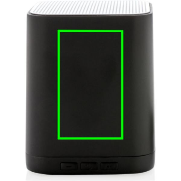 Juhtmeta 3W kõlar, mida saab kohandada teie logoga ABS-pinnal. Logo süttib teie kaubamärgi optimaalseks eksponeerimiseks. Kõlar kasutab BT 4.2 sujuvaks ühenduseks kuni 10 meetri kaugusel. Sisseehitatud 400 mAh aku võimaldab ühe laadimisega mängida muusikat kuni 4 tundi ja uuesti laadimine toimub 1 tunniga.