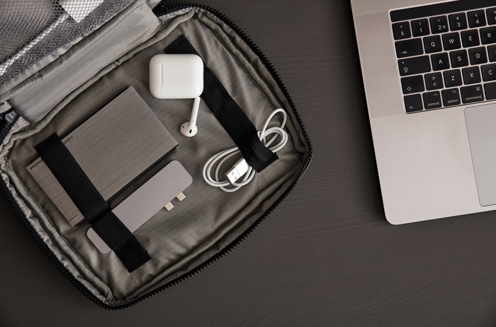 Hoidke kõik hädavajalikud asjad käeulatuses selle käepärase organiseerijaga. See annab teile ruumi kõigele, mida päeva jooksul vajate, nagu kõrvaklapid, toitepank, pastakad ja sülearvutid. Lühikesel küljel olev klõpskonks võimaldab kinnitada koti suurema koti külge.