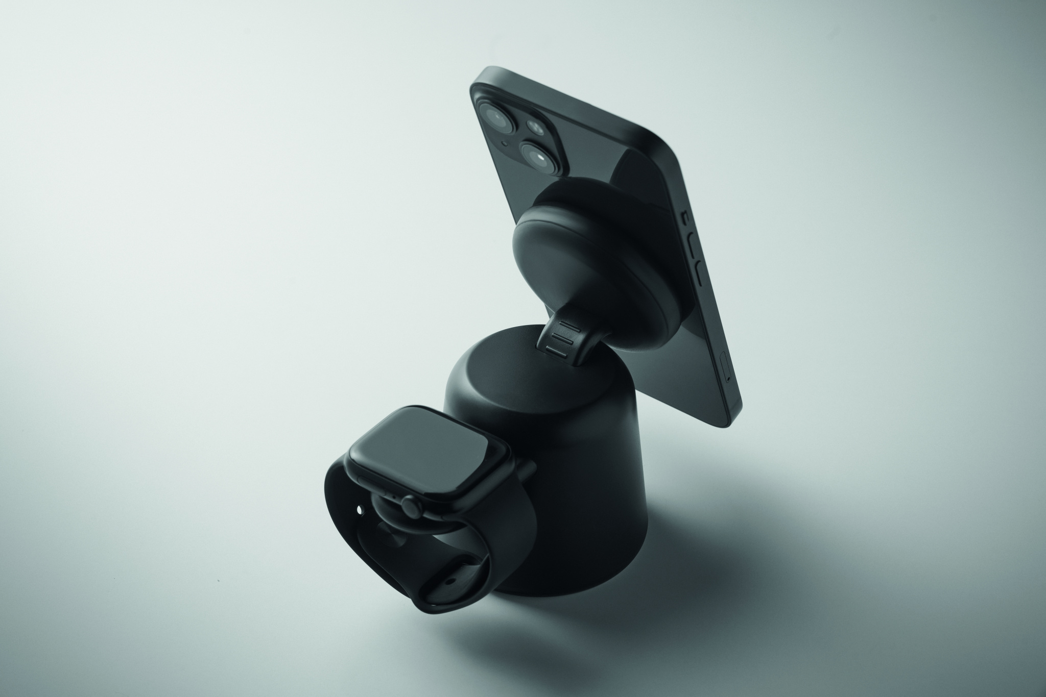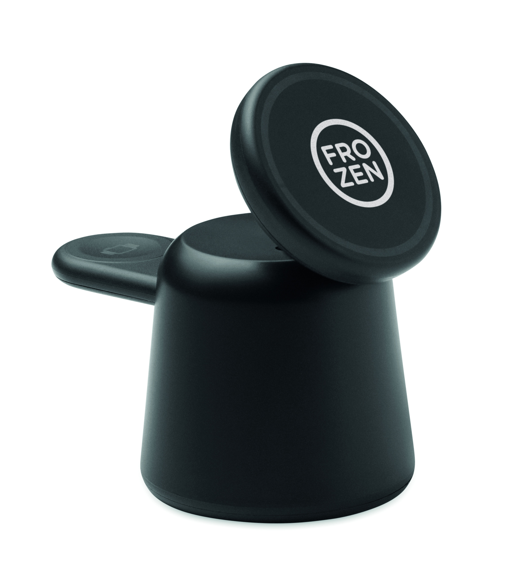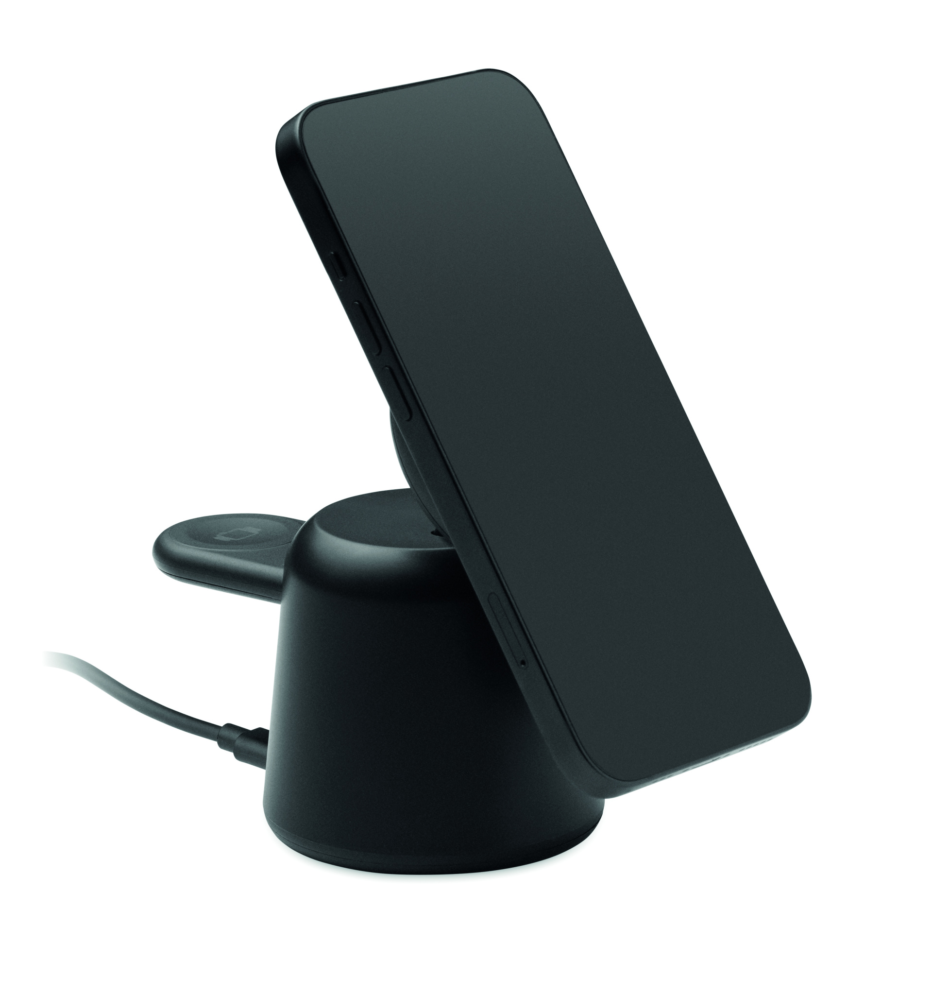 3 in 1 latausasema ABS:ssä. Sisältää 15 W:n magneettisen langattoman laturin puhelimelle ja TWS:n, jossa on puhelimen pidike-toiminto, sekä älykellolaturin (vain iOS). Magneettitoiminto yhteensopiva iPhone® 12:n ja uudempien kanssa. Sis. magneettisen metallirengas.