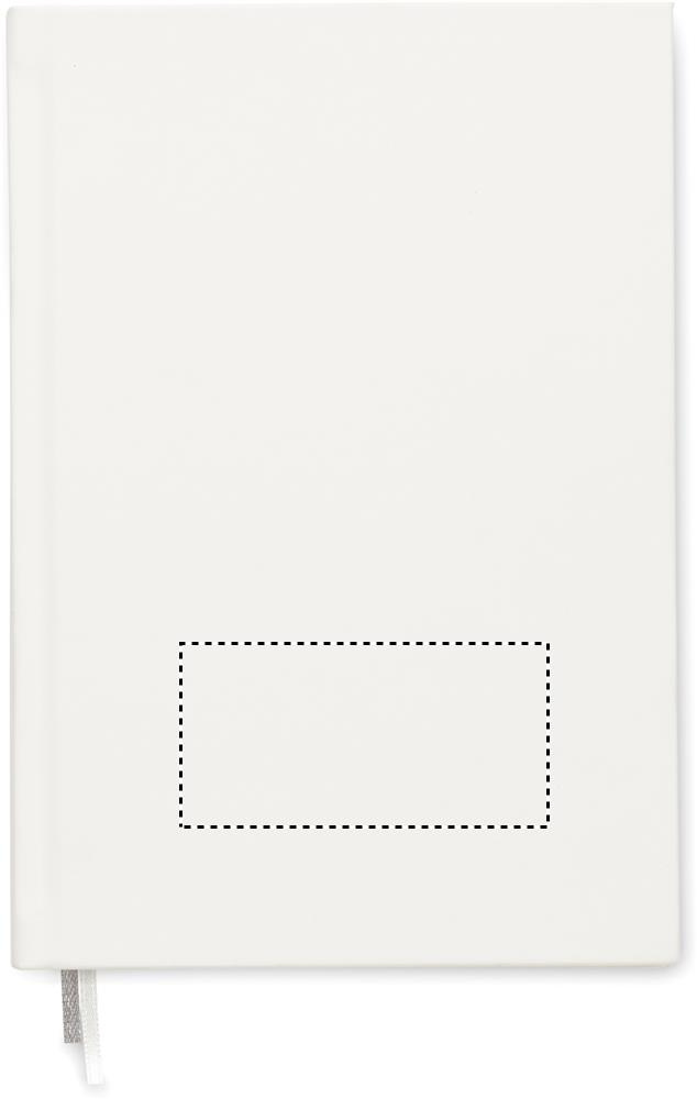 A5-muistikirja, jonka kansi on 60 % kierrätettyä post consumer polyesteriä ja 40 % PU-kangasta. Nidottu. 256 viivoitettua sivua 70 g/m² kierrätyspaperia (128 arkkia). 2 polyesterinauhasta tehtyä sivumerkkiä.