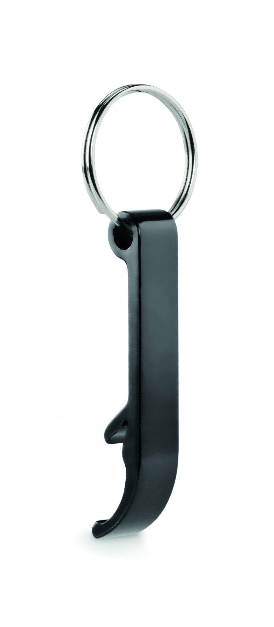 Kierrätysalumiinista valmistettu avaimenperä joka toimii myös pullonavaajana.