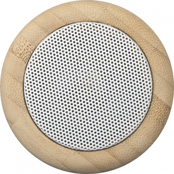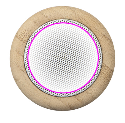 ABS:stä ja bambusta valmistettu Bluetooth 5.0 -kaiutin väriä vaihtavalla LED-valolla, 300 mAh:n akulla, latausaika 2 tuntia ja kantama jopa 10 metriä. Logosi asetetaan kaiuttimeen.