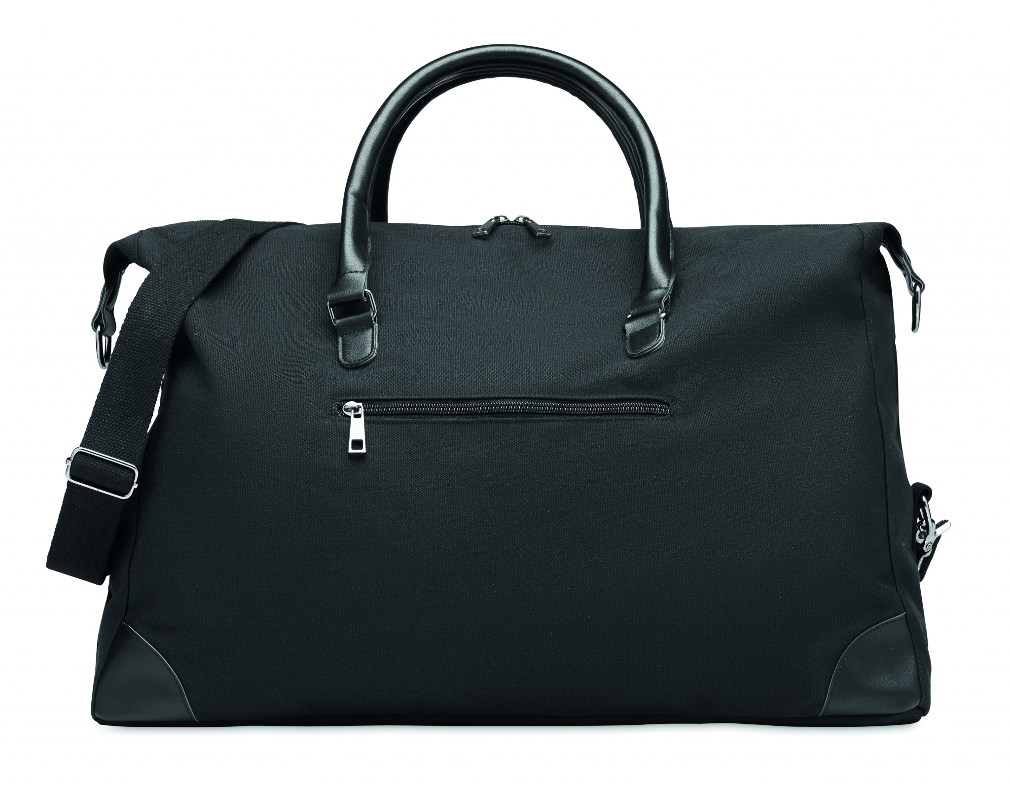 340 gr/m² canvas laukku, kierrätetyillä PU yksityiskohdilla, RPET 210D vuorauksella ja säädettävät hihnat.