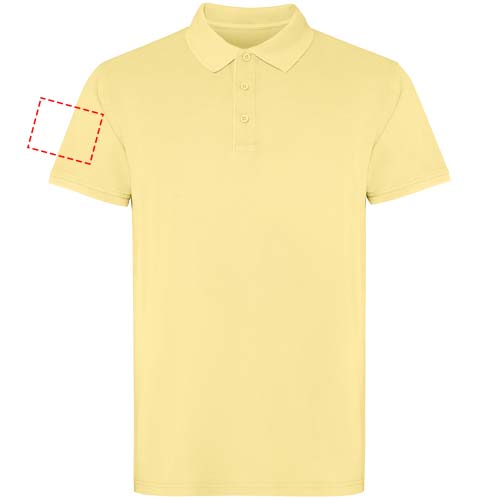 Lyhythihainen unisex-poolopaita. Happopesuviimeistely. Uurrettu 1 x 1 -kaulus ja hihansuut, sivuhalkiot. Sävy sävyyn -peitetikkaus. Napituslista, jossa kolme nappia.