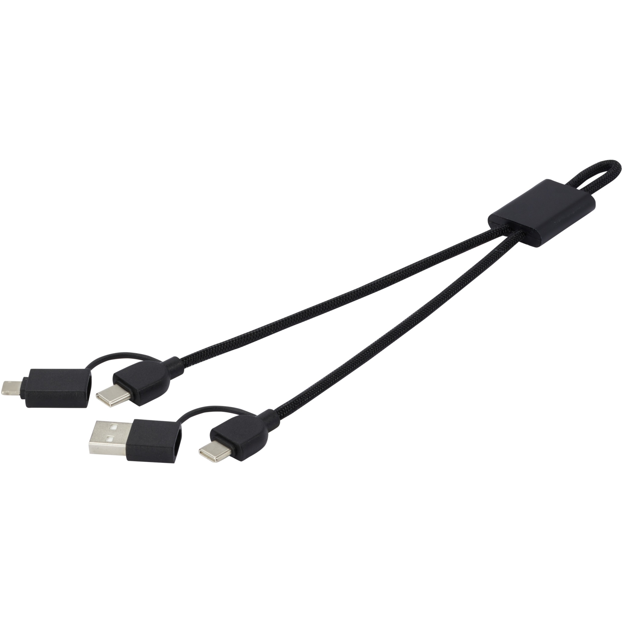 Tämä 45 W:n Connect-pikalataus- ja tiedonsiirtokaapeli tyylikkäällä kierrätetystä alumiinista valmistetulla kotelolla ja RPET-johdolla tarjoaa useita latausratkaisuja: Type-C- ja USB-A-tulo sekä Type-C- / iOS- / Micro-USB-lähtö. Kaikkien näiden liittimien ansiosta voit ladata tällä kaapelilla useimpia älypuhelimia, kameroita, virtapankkeja, kuulokkeita ja jopa Type-C-yhteensopivia kannettavia tietokoneita (jopa 45 W). Apple CarPlay ja Android Auto yhteensopiva. Kaapelin pituus on 25 cm ja se toimitetaan 100-prosenttisesti kierrätetyssä voimapaperilaatikossa.