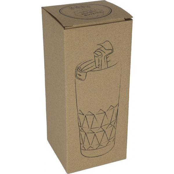 Kaksiseinäinen jalo ruostumattomasta teräksestä valmistettu muki, jonka tilavuus on 500 ml; mikä tärkeintä, tiivis. Logosi kaiverretaan.