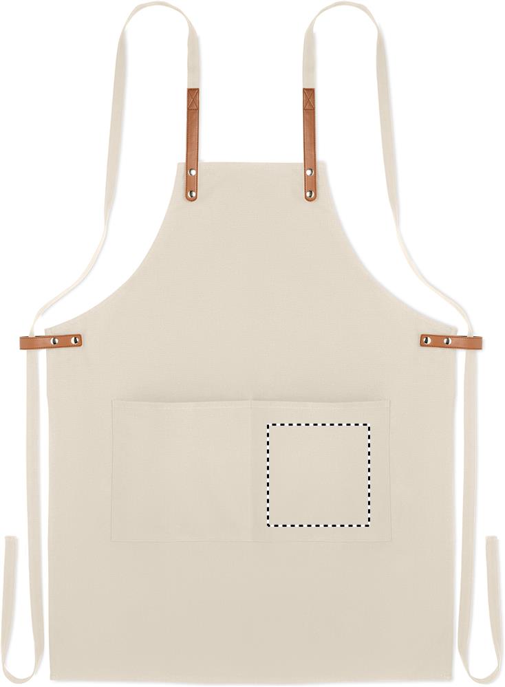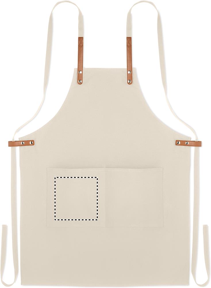 Säädettävä ja 2 etutaskulla varustettu 340 gr/m² orgaanisesta puuvillasta valmistettu esiliina.