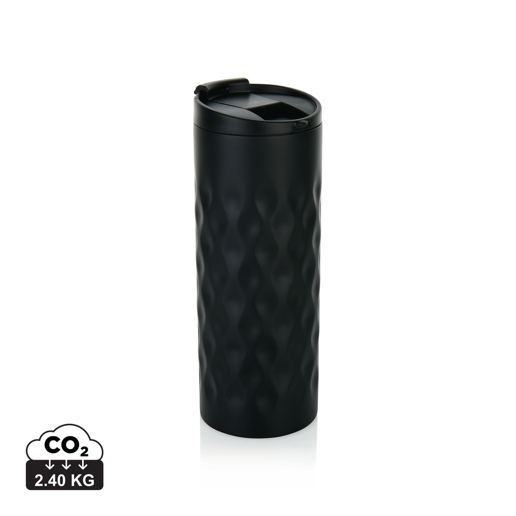Juomamuki ruostumatonta terästä, kaksoisseinämä. Koristeltu trendikkäällä geometrisellä kuviolla. Kapasiteetti 350 ml.