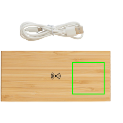 Logo trade mainoslahja kuva: Herätyskello ja 5W langaton laturi bambusta