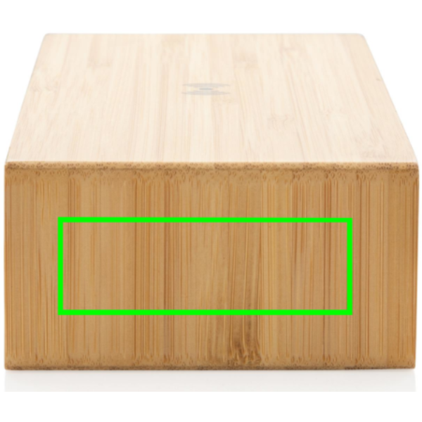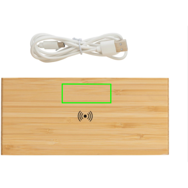 5W langaton laturi ja herätyskello bambuisella ulkokuorella ja 24-tunnin näytöllä. Takapuolella USB portti langallista latausta varten. Sisältää 150 senttisen PVC vapaan TPE micro USB kaapelin. Sopii yhteen kaikkien QI-sopivien laitteiden, kuten uusimpien Android ja iPhone -puhelimien, kanssa. Sisääntulo 5V/1.5A; langaton ulostulo 5V/1A - 5W; 1 USB portti, 5V/1A