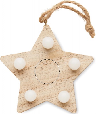 Puusta valmistettu (80 % poppelipuuta ja 20 % hamppua) tähdenmuotoinen koriste, jossa 5 LED-valoa ja ripustusnaru. Mukana 1 CR2032-paristo.