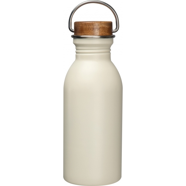 Kierrätetystä ruostumattomasta teräksestä valmistettu juomapullo, suljettu akaasiapuukorkilla, varustettu kantokahvalla. Tilavuus 500 ml.