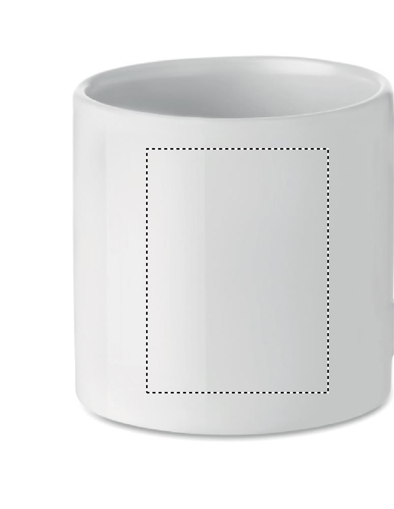 Keraaminen muki 200 ml, erikoispinnoite sublimaatiota varten. Yksittäispakkaus valkoisessa pahvilaatikossa.