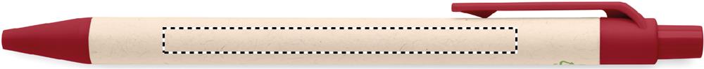 Kuulakärkikynä, jonka runko on valmistettu kierrätyskartongista (70% maitopurkeista tehtyä kartonkia ja 30% kierrätyspaperia) ja PLA-osat 100 % biohajoavasta maissista. Sininen muste.