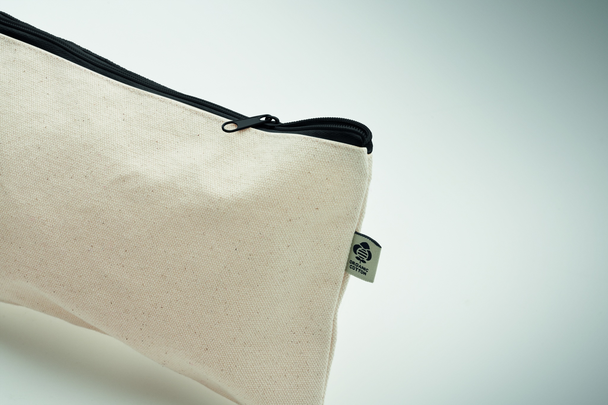 Kosmetiikkapussi luomupuuvillaa värillisellä vetoketjulla. 340 g/m².