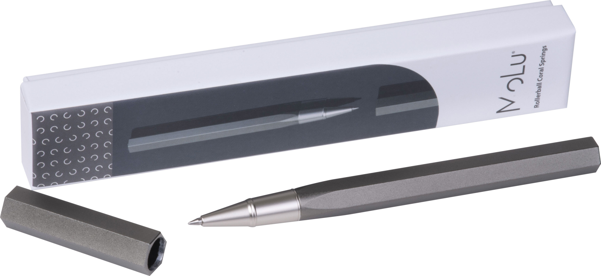 MoLu Coral Springs -kynäkynä – Rohkea muotoilu kohtaa kirjoituskulttuurin. Elegantti kuusikulmainen runko, jonka päällä on hienostunut MoLu-logo. Varustettu luotettavalla Parker-järjestelmällä – suuri kapasiteetti, sininen muste ja uudelleentäytettävä. Ainutlaatuinen muoto sopii täydellisesti käteen – tyylikäs, toimiva ja tunnistettava.