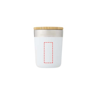 Kaksiseinäinen kuparivakuumieristetty kahvimuki, moderni kansi, orgaanisesta bambusta valmistettu kansi. Eristetty 18/8 ruostumaton teräs pitää juoman kuumana tai kylmänä useita tunteja. BPA-vapaa, testattu ja hyväksytty elintarviketurvallisuuslainsäädännön (LFGB) mukaisesti, sekä ftalaattipitoisuus testattu REACH-asetusten mukaisesti. Sopii useimpien kahvinkeittimien alle, joten se on täydellinen kahvimuki työskentelyyn tien päällä. Tilavuus on 300 ml. Toimitetaan kierrätetystä kartongista valmistetussa lahjapakkauksessa. Suositellaan pestäväksi käsin.