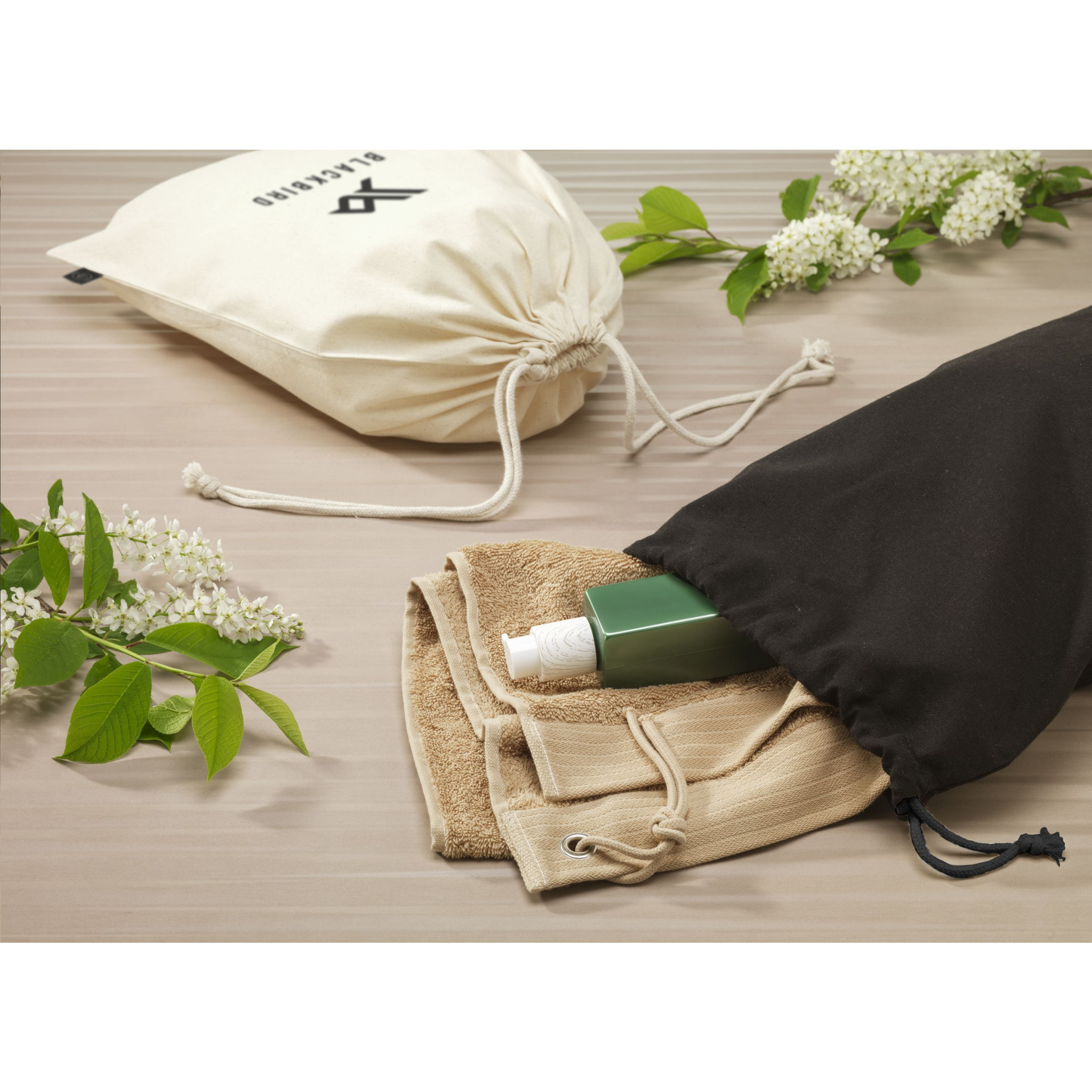 Kierrätetystä puuvillasta valmistettu lahjapussi (150 g/m²). Kiristysnyörillä, jotka on valmistettu kierrätetystä polyesterista ja kierrätetystä puuvillasta. Alkuperäinen lahjapakkaus ja sopii tavaroiden säilytykseen. GRS-sertifioitu. Kierrätysmateriaali yhteensä: 100 %. Kapasiteetti n. 4 litraa.