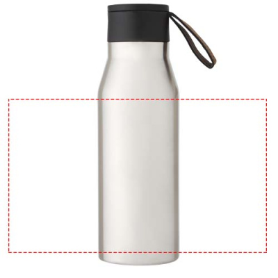 Kuparityhjiöeristetty, ruostumattomasta teräksestä valmistettu pullo klassisella ja tyylikkäällä muotoilulla. Sisältää PU-tekonahkahihnan ja kansidetaljin. Tämä tekee siitä ihanteellisen laserkaiverrukseen, joka korostaa logon hopeanvärisenä ja luo kauniin visuaalisen vaikutelman. Kaksiseinäinen, kuparityhjiöeristetty, 18/8 ruostumattomasta teräksestä tehty rakenne pitää juomat kuumina tai kylminä useita tunteja. Testattu ja hyväksytty elintarviketurvallisuslainsäädännön (LFGB) mukaisesti, ja ftalaattipitoisuus on testattu REACH-asetusten mukaisesti. Tilavuus on 500 ml. Toimitetaan kierrätetystä kartongista valmistetussa lahjapakkauksessa.