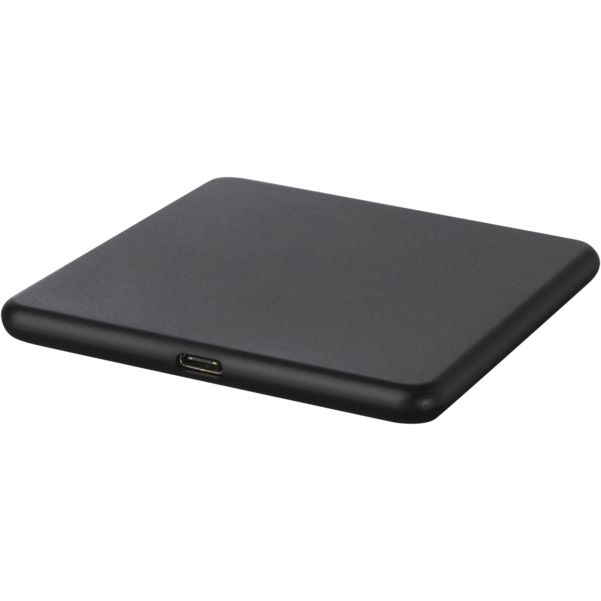 Langaton latausalusta, joka on valmistettu kierrätetystä ABS-muovista. Latausalusta liitetään tietokoneeseen tai kannettavaan tietokoneeseen, ja se lataa sen päälle asetettua laitetta. 10 W:n (maksimi) langaton teho mahdollistaa nopean latauksen. Yhteensopiva kaikkien Qi-laitteiden kanssa (iPhone 8 tai uudempi ja Android-laitteet, jotka tukevat langatonta latausta). Toimitetaan lahjapakkauksessa, joka sisältää käyttöohjeet (molemmat kestävistä materiaaleista).