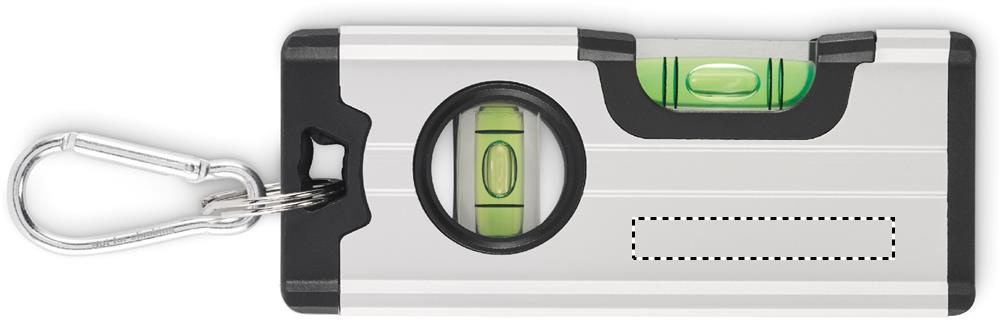 Minimagneettinen kaksoisvesivaaka alumiinikotelossa karabiinihaarukalla. Karabiini ei ole kiipeilyyn (ei-ammattikäyttöön).