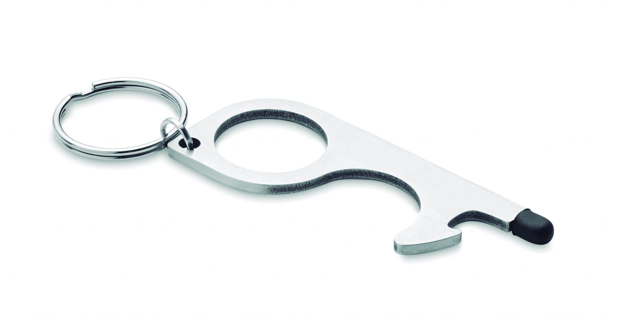 Monikäyttöinen 5-1 kosketusvapaa avaimenperä. Avaa ovet, paina erillaisia nappeja ja puhelinta koskematta. Tuotteessa pullonavaaja, kosketusnäyttöpää ja avainlenkki.