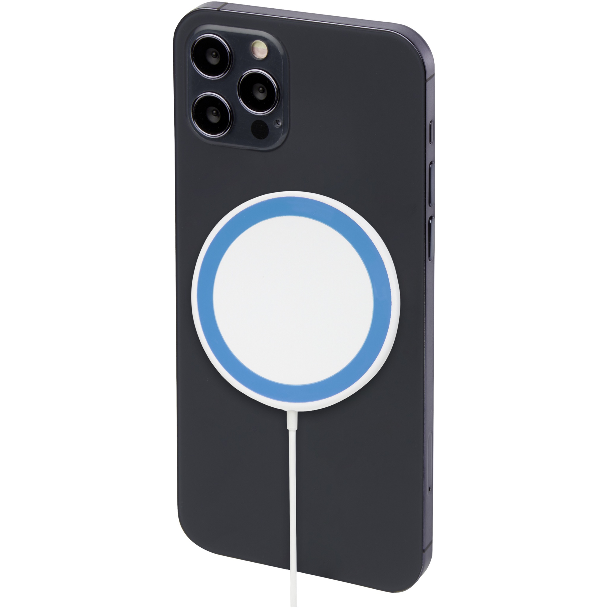 Langaton magneettinen latausalusta, joka voidaan kiinnittää puhelimen takaosaan (iPhone 12 /iPhone 12 Pro /iPhone 12 Pro MAX) sen lataamiseksi. Tämä 10 W:n langaton laturi on yhteensopiva kaikkien Qi -laitteiden kanssa (iPhone 8 tai uudempi ja Android -laitteet, jotka tukevat langatonta latausta), ja muissa puhelimissa sitä voidaan käyttää tavallisena langattomana latausalustana. Mukana tulee ylimääräinen kaksinkertaisella teipillä varustettu metallirengas, jotta tuote on yhteensopiva muiden älypuhelimien kanssa, joissa on langaton latausmahdollisuus. Toimitetaan lahjapaketissa käyttöohjeen kanssa.