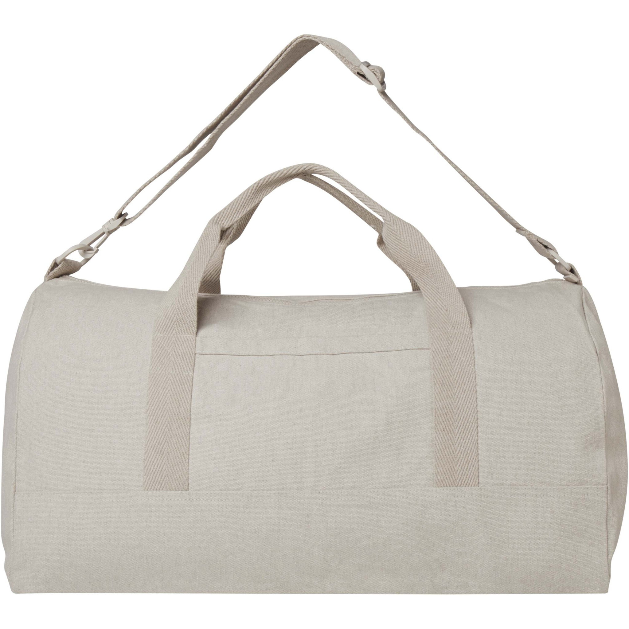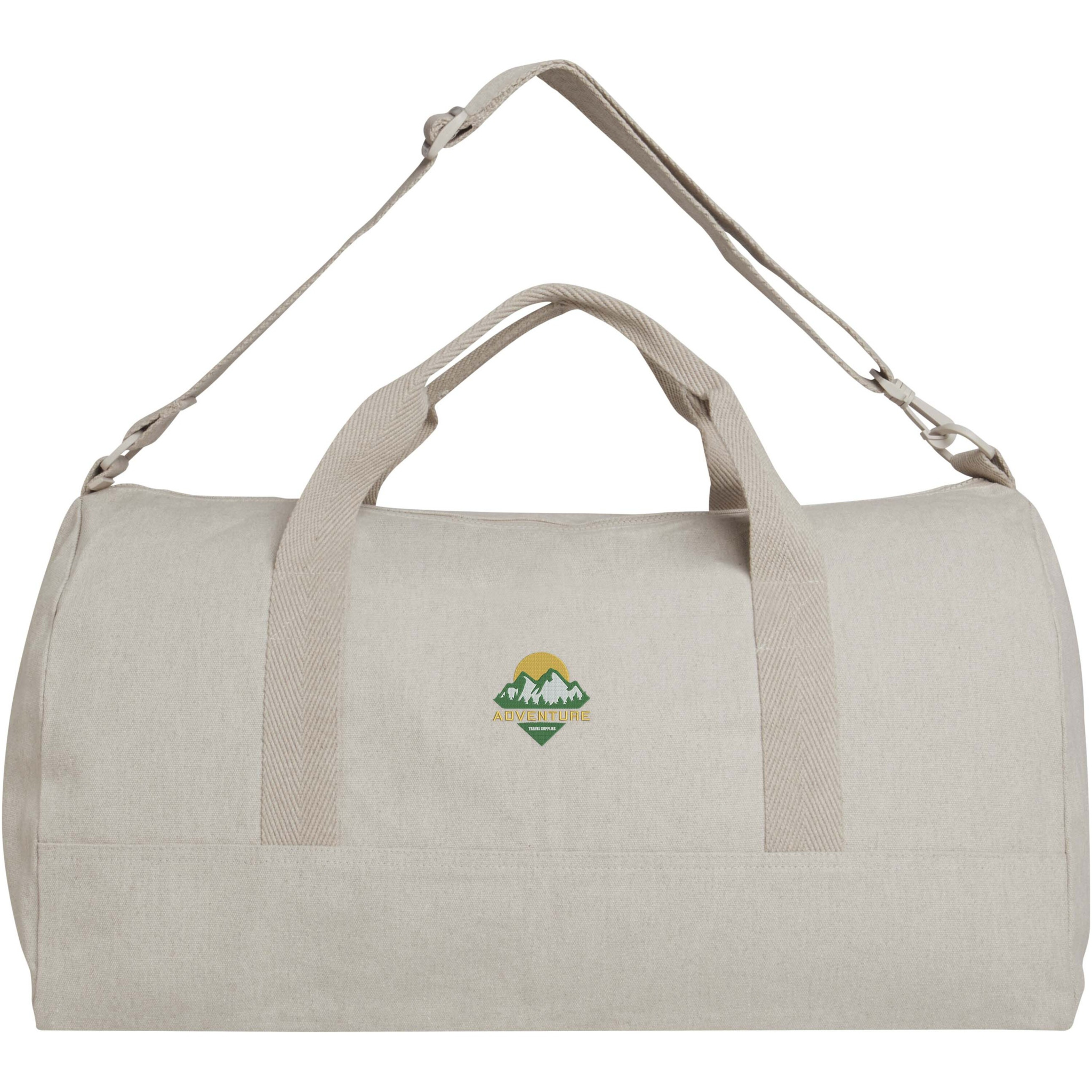 500 g/m²:n kierrätetystä puuvillasta ja kierrätetystä polyesterista valmistetussa Porter duffelilaukussa on tilava päälokero isompien tavaroiden optimaalista säilytystä varten sekä pieni etutasku pienten esineiden, kuten passin tai puhelimen, säilytykseen. Duffelilaukkua voidaan kantaa kahdesta lyhyestä kahvasta tai pidennettävästä ja irrotettavasta olkahihnasta, jota voidaan säätää maksimimukavuuden saavuttamiseksi. Duffelilaukun valmistuksessa on käytetty Cyclo® kierrätyskuituja, joiden esilajiteltu jäteraaka-aine määrää langan värin. Nämä kuidut vähentävät ensiöraaka-aineiden kysyntää ja ovat myös osoitus sitoutumisesta kiertotalouteen, joka kannustaa jätteen vähentämiseen ja tukee suljettuun kiertoon pohjautuvaa järjestelmää. Jokaisen pussin mukana tulee myös Aware™-jäljitin. Tämän innovatiivisen ominaisuuden avulla käyttäjät voivat jäljittää tuotteensa alkuperän ja matkan QR-koodin avulla, mikä lisää läpinäkyvyyttä toimitusketjussa ja edistää vahvempaa yhteyttä tuotteen ja sen tuotantoprosessin välillä. Tilavuus: 50 litraa.