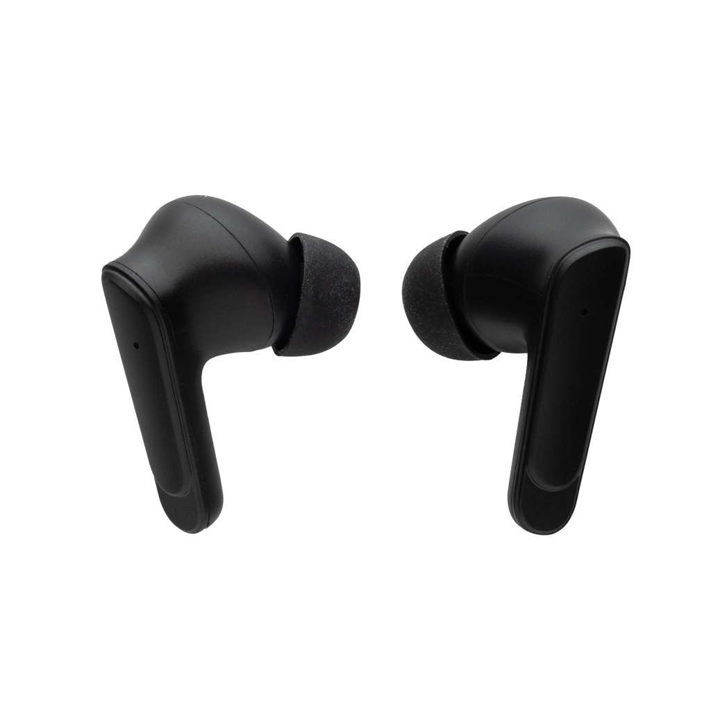 Työskentele, matkusta tai matkusta hiljaisuudessa ANC- ja ENC-yhdistelmäkuulokkeiden avulla. ANC-toiminto varmistaa, että ulkopuolinen melu vähenee optimaalisen keskittymisen saavuttamiseksi. ENC-toiminnot suodattavat pois ulkoiset äänet puhelun aikana, jotta puhelukokemus olisi selkeämpi. Kuulokkeet ja latauskotelo on valmistettu RCS (Recycled Claim Standard) -sertifioidusta kierrätetystä ABS:stä. Kierrätetty kokonaissisältö: 66 % tuotteen kokonaispainosta. RCS-sertifiointi. Kuulokkeet toimitetaan kompaktissa 200 mAh:n latauskotelossa, jonka avulla voit ladata ja ottaa kuulokkeet mukaan minne menetkin. Kuulokkeet käyttävät BT 5.3:a automaattiseen pariliitoksen muodostamiseen ilman vaivatonta ja vakaata yhteyttä. 30 mAh akku mahdollistaa jopa 5 tunnin toistoajan (ANC:lla) ja 7 tunnin (ilman ANC:tä) ja ne voidaan ladata uudelleen 1,5 tunnissa latauskotelossa. Langattoman etäisyyden kantama jopa 10 m. ANC: 23 DB. Mukana 3 erikokoista korvatulppaa. Sisältää C-tyypin latauskaapelin.