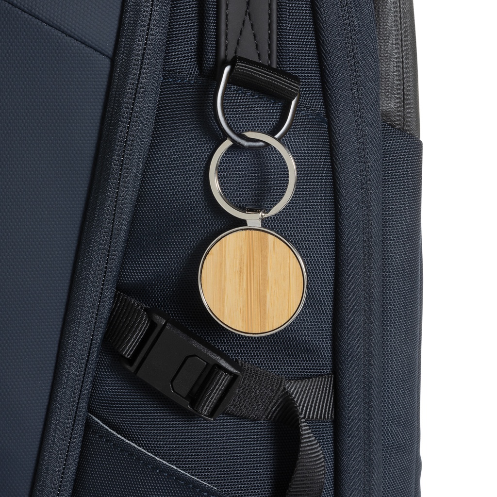 Logo trade mainoslahja kuva: Pyöreä bambu avaimenperä RCS kierrätettyä sinkkiseosta