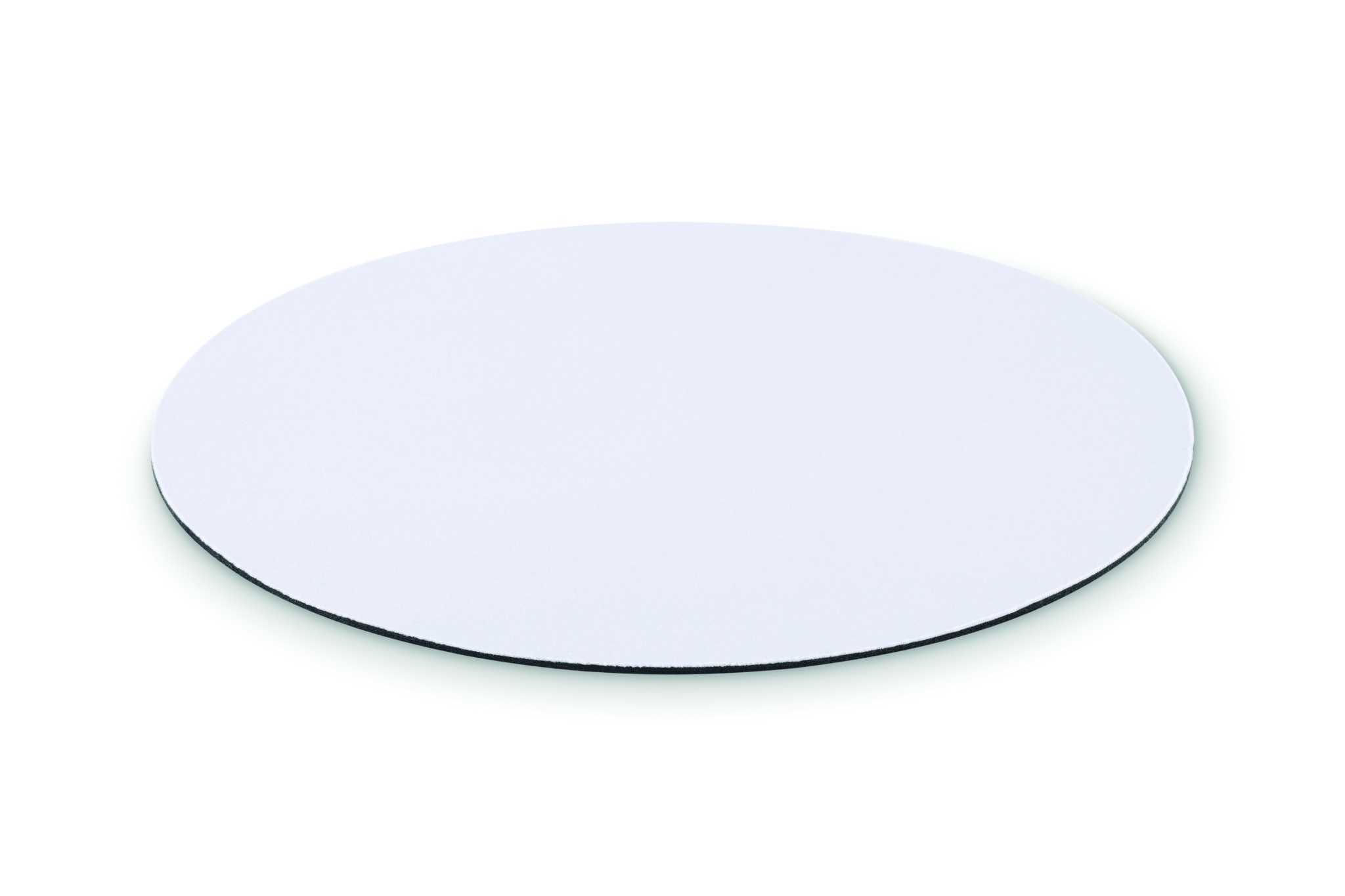 Sublimaatioon tarkoitettu tietokoneen hiirimatto, jossa polyesteripinta ja liukumaton pohja kumia. Halkaisija 21 cm.
