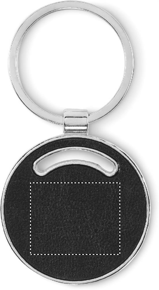 Pyöreä metallinen avaimenperä kierrätetyllä PU-nahalla.