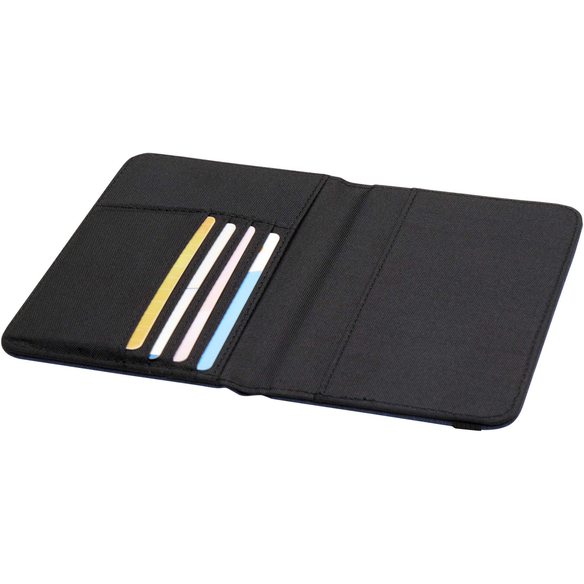 Ross RFID-passikotelo on valmistettu kierrätetystä polyesteristä ja se sopii täydellisesti runsaasti matkustaville. Siinä on erilliset taskut passille, lipuille, luottokorteille ja muille tavaroille. Mukana tuleva kuminauhasuljin pitää sisällön turvassa.