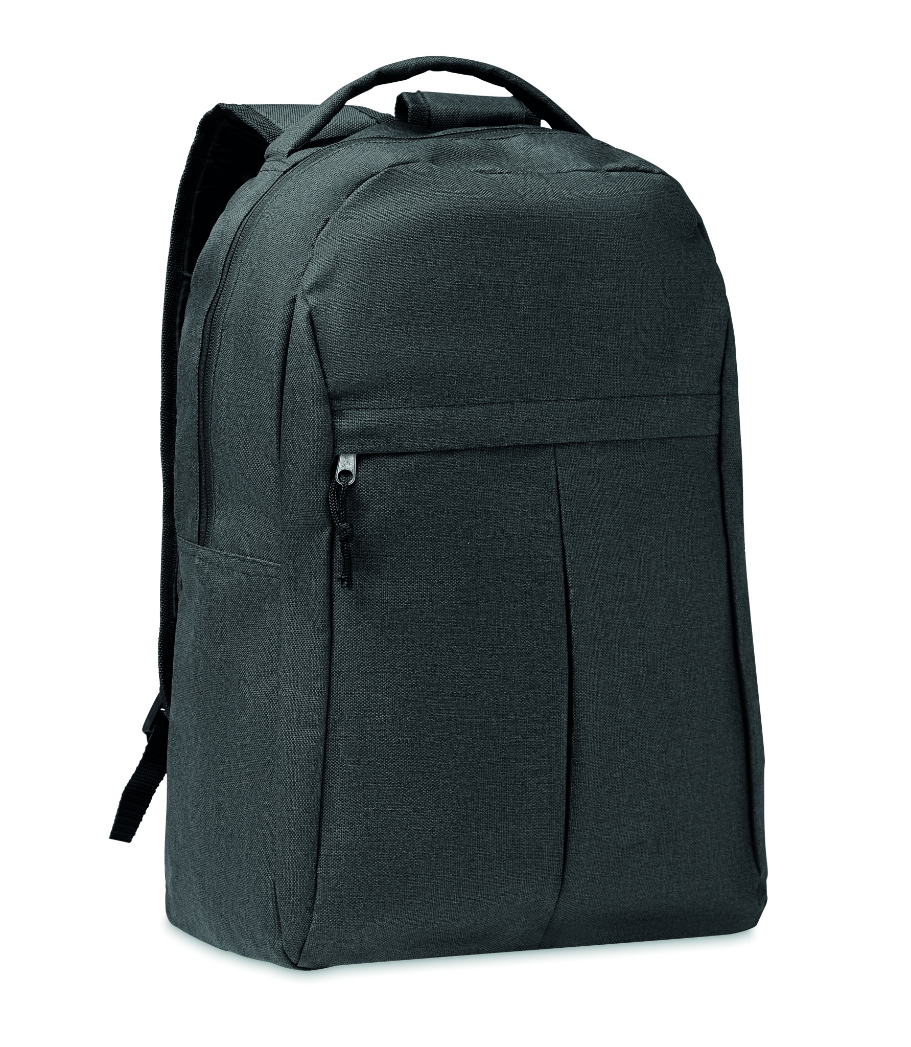 600D RPET polyesterinen reppu, ulkoinen vetoketju tasku ja sivulla verkkotasku. Säädettävät pehmustetut olkaimet, maksimi kanto painoraja 5 kiloa.