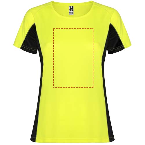 Shanghai naisten lyhythihainen urheilu-t-paita, Fluori keltainen / tasainen musta