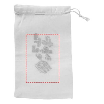 Puinen neliönmuotoinen aivopähkinä puuvillapussissa. Painatus ei ole mahdollinen peleihin.